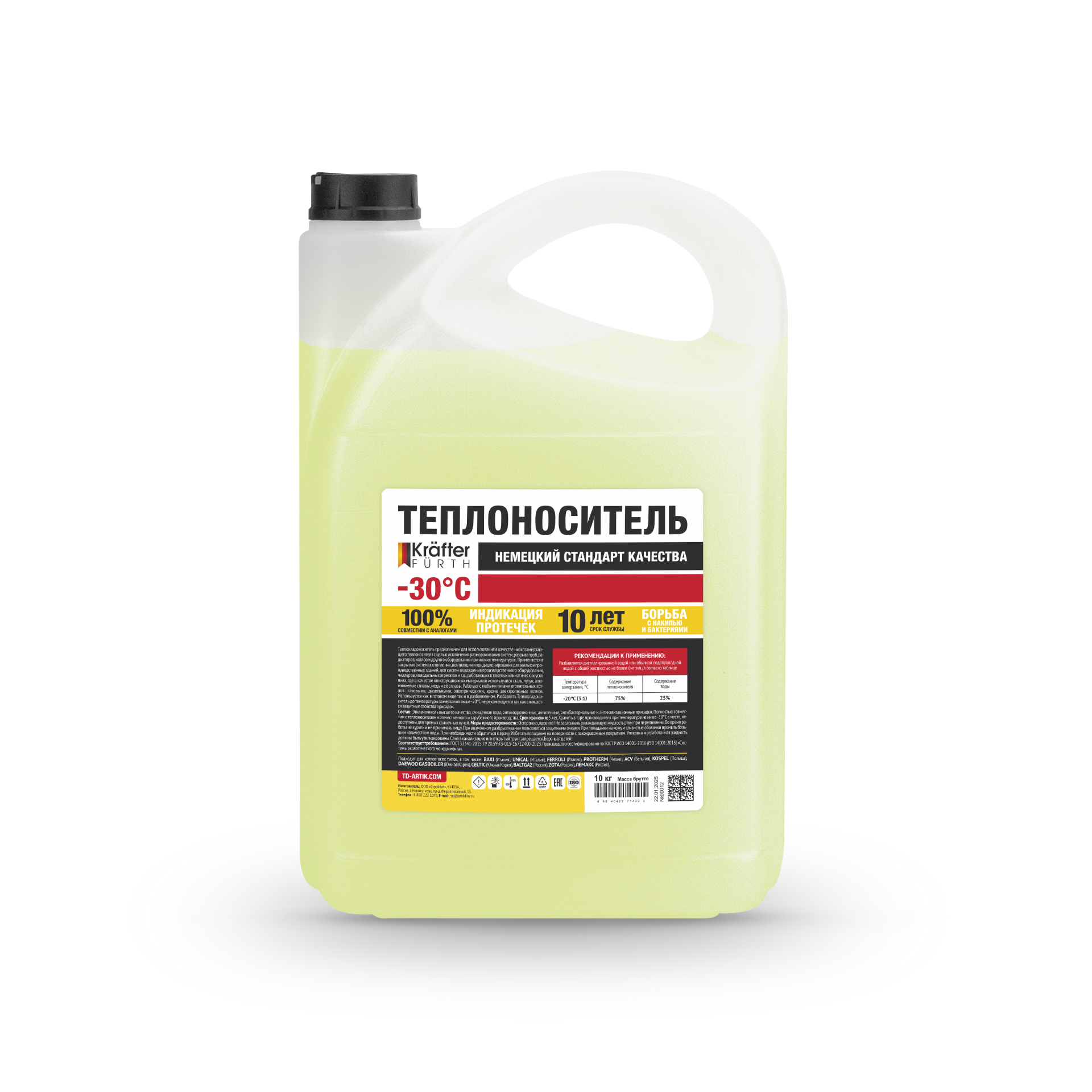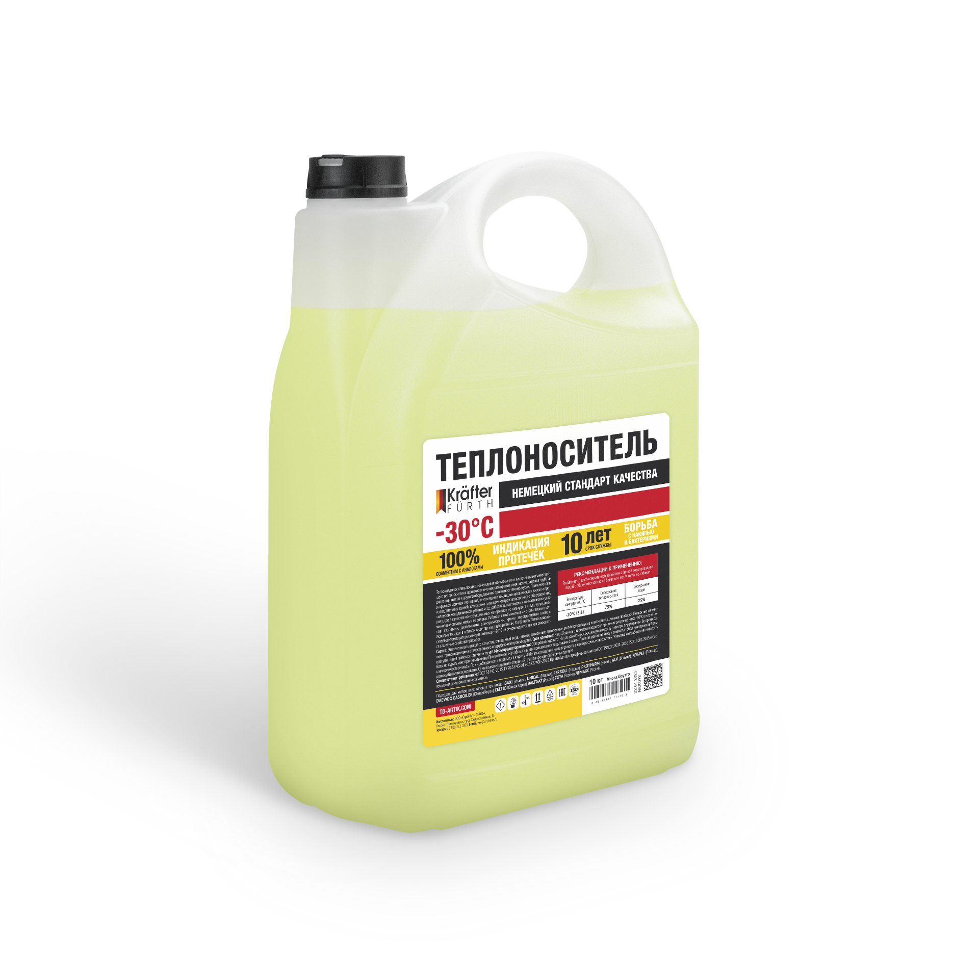 Теплоноситель-хладагент KRAFTER FURTH — 30 — теплохладоноситель предназначен для использования в качестве низкозамерзающего теплоносителя с целью исключения размораживания систем, разрыва труб, радиаторов, котлов и другого оборудования при низких температурах.